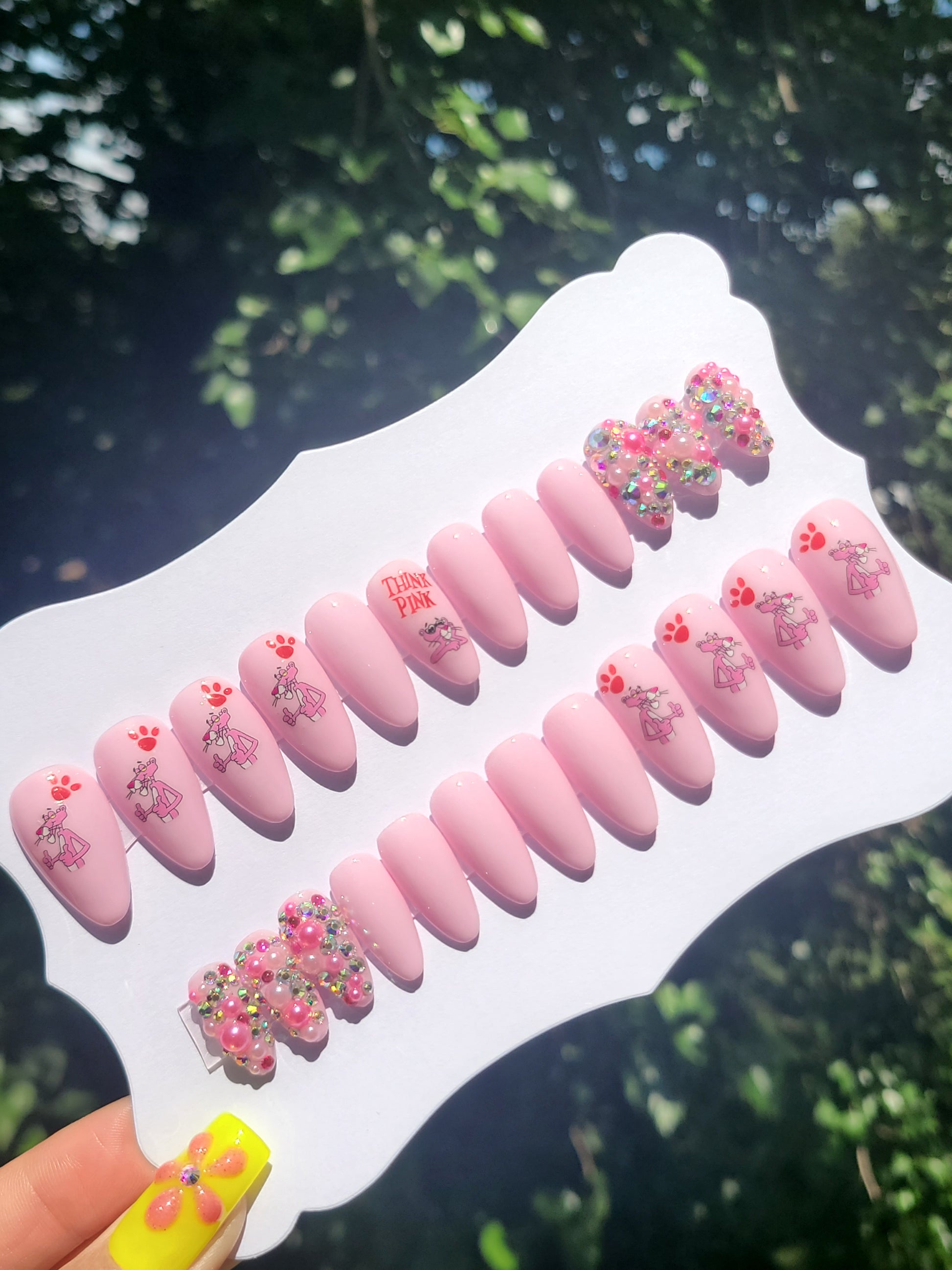 24 piece nail set sold as pictured features pearl/AB crystal gem embellishments