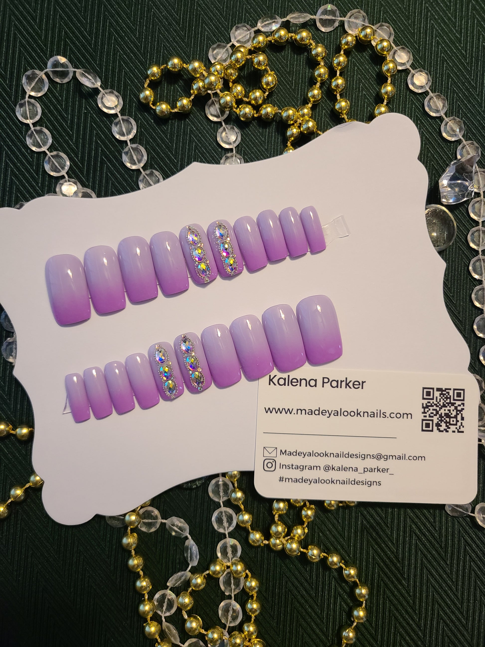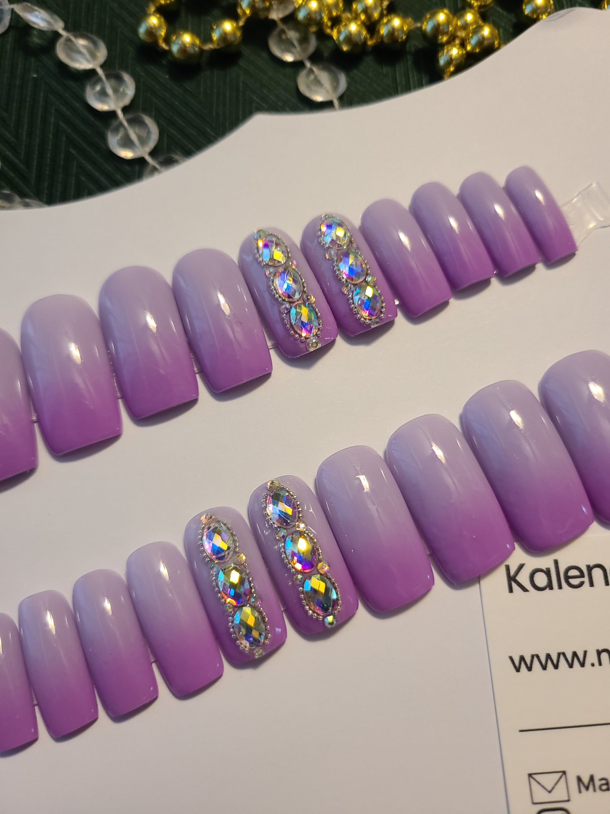 20 piece nail set sold as pictured features silver caviar beads/AB crystal gem embellishments